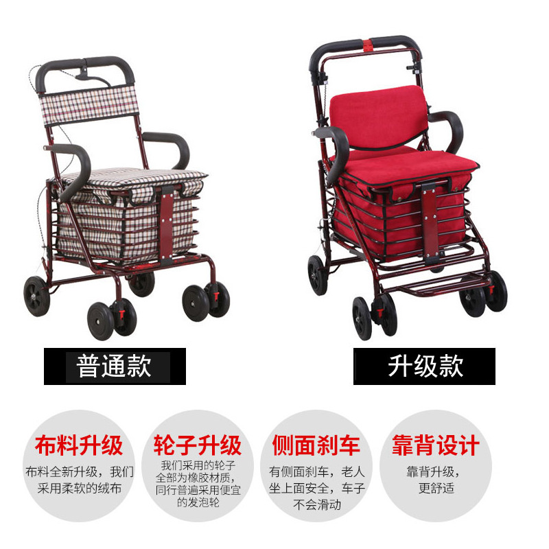 ARTISAM Elderly Push Sit Shopping Cart Trolley Shopping Portable Trolley Walking For The Leisure 4-wheel Vegetable