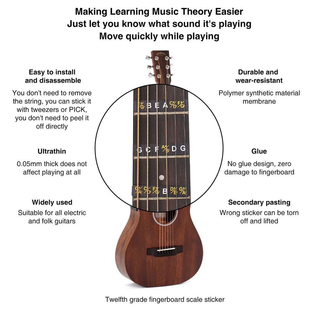 Electric Acoustic Guitar Fretboard Note Chart Label Sticker Map Decals for Beginner Learning guitar Practicing tool