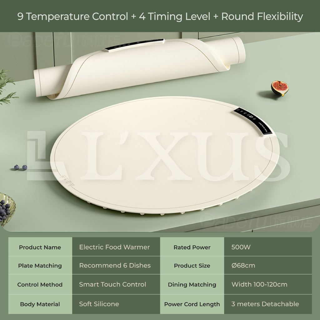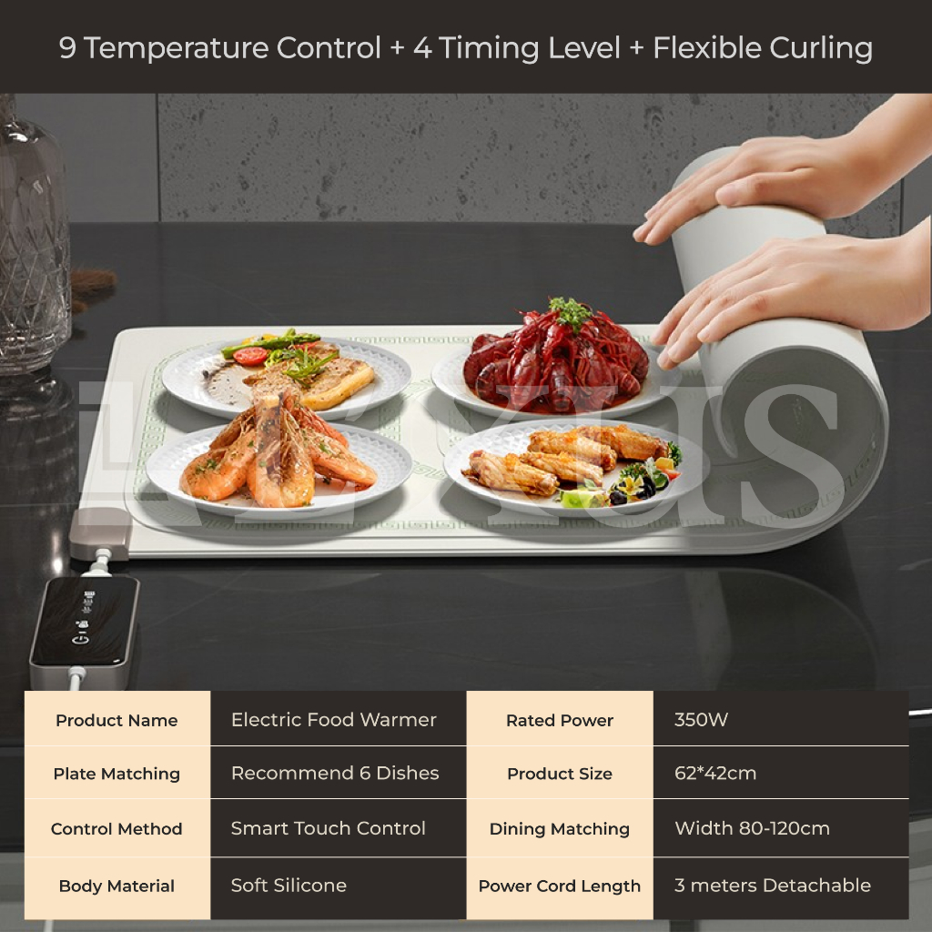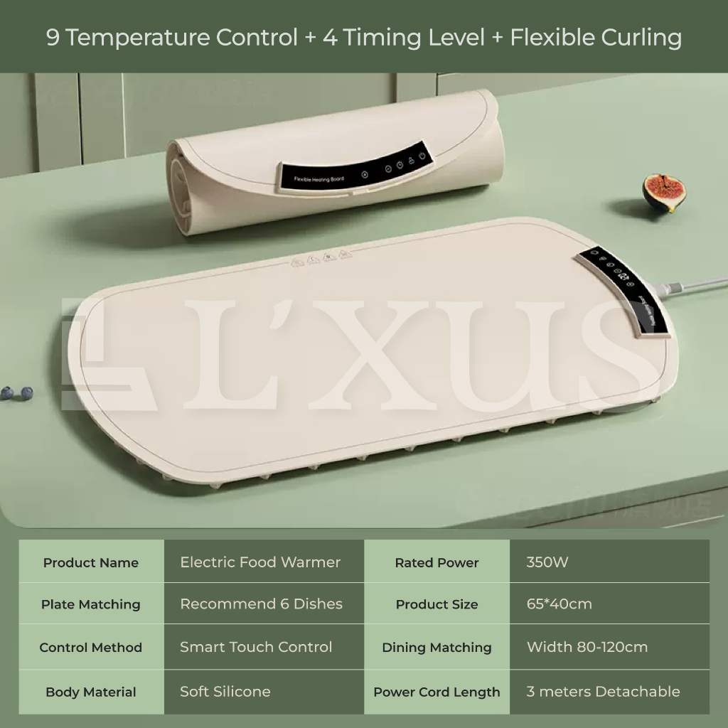 Electric Food Warmer Rollable Dishes Pad Heat Table Dining Mat Foldable Hot Warming Heat Panas Makanan Meja Easy Fold
