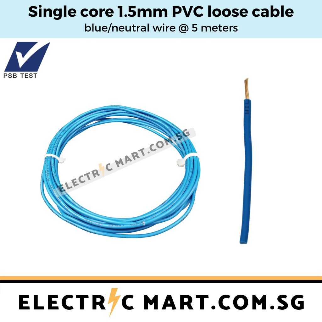 Electric Mart 1C Single Core 1.5mm PVC Electrical Cable Wire - 5 meters (loose cable length)