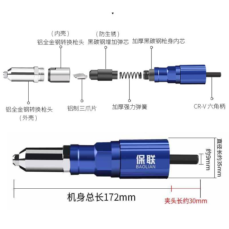 Electric Rivet Nut Gun Tool, Riveting core pulling conversion head Riveting Insert Adapter Tools Cordless Drill SS 45