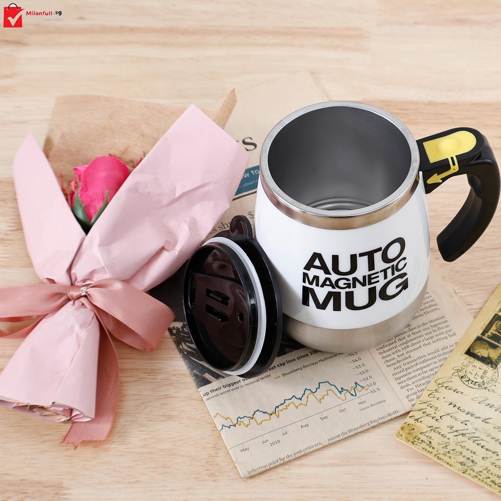 Electric Self Stirring Mug 500mAh Rechargeable Automatic Mixing with Magnetic Stirring Bar 400ml Auto Magnetic Mixing Cup with Handle 304 Stainless Steel Self Stirring