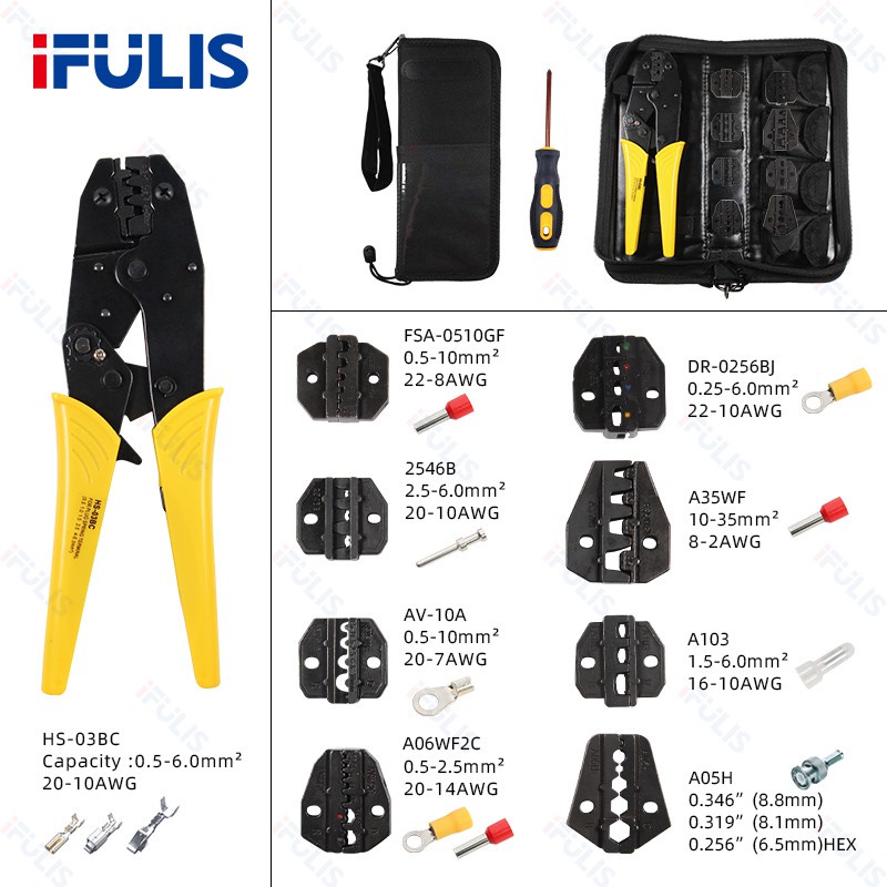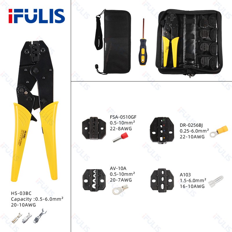 Electrical Terminal Ratchet Crimping Crimper Auto Electrician Tool HS-03BC Wire Terminal Crimping Pliers Jaw Tools Hand