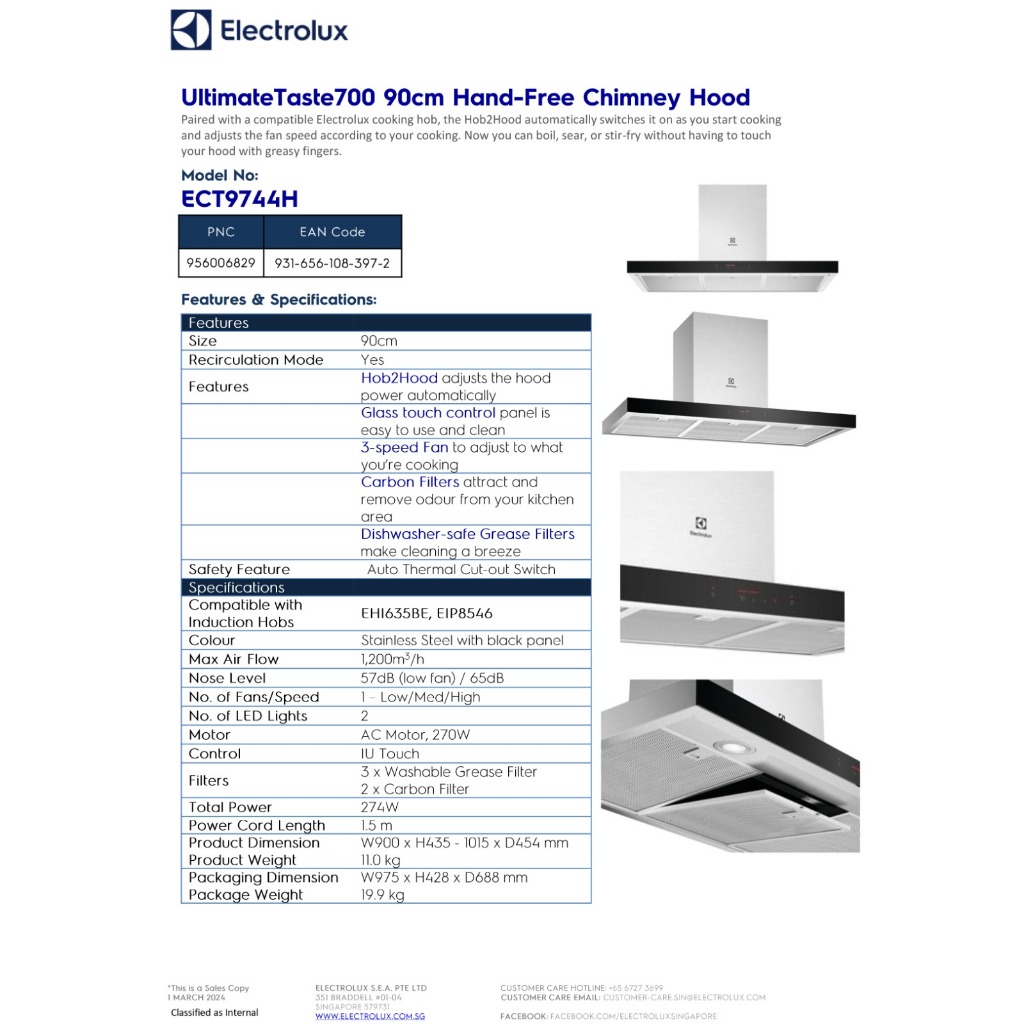 Electrolux ECT9744H 90cm UltimateTaste 700 Chimney Extractor Hood with 2 Years Warranty