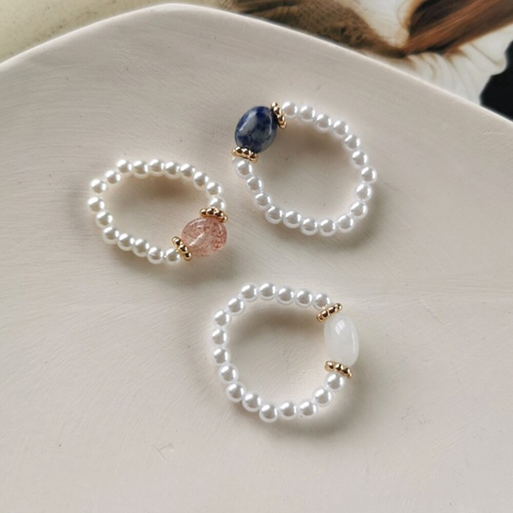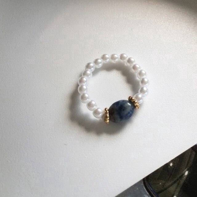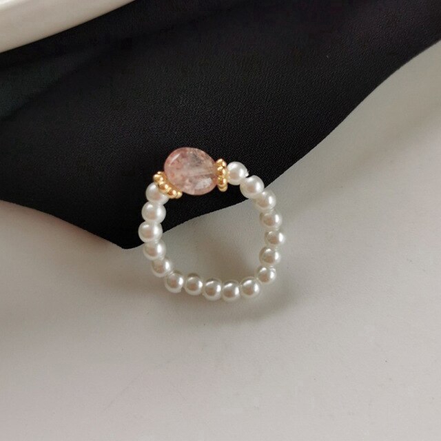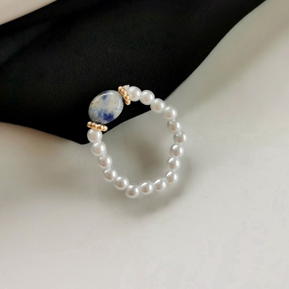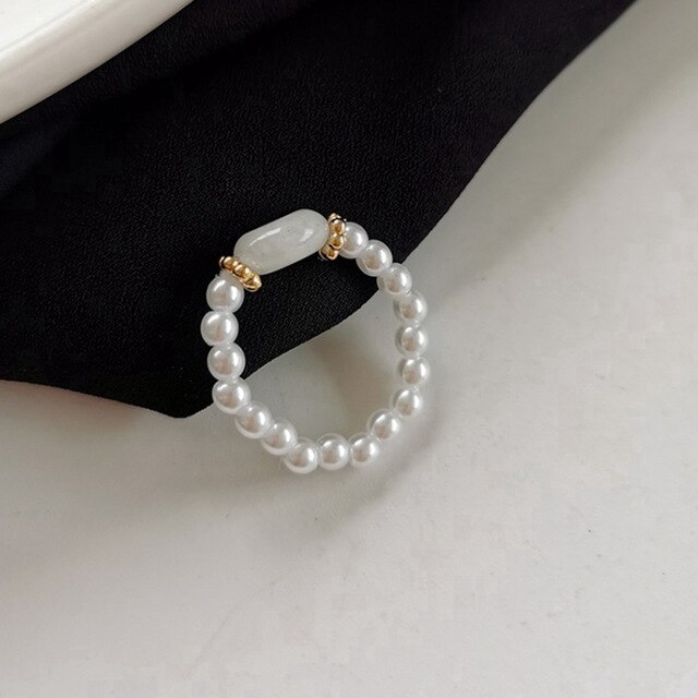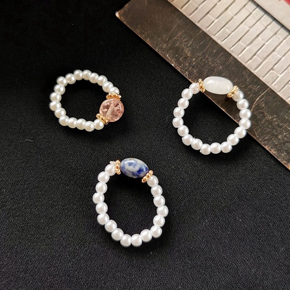 Elegant Simulated Pearl Bead Stone Elastic Rings For Women Midi Finger Knuckle Ring Vintage Adjustable Jewelry Gifts