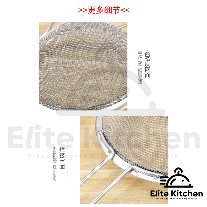 Elite Kitchen - Stainless Steel Wire Fine Mesh Oil Strainer Flour Food Colander Fried Oil Filter Scoop Sifter Baking