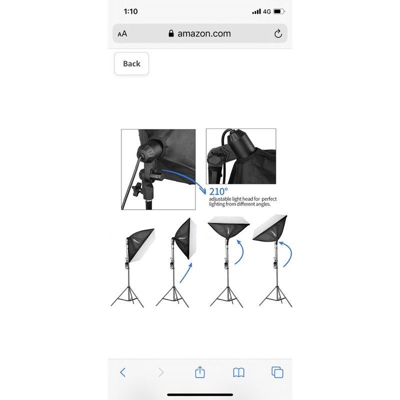 Emart 1000W Softbox Lighting Kit 24" x 24"(comes with 1 working light bulb)