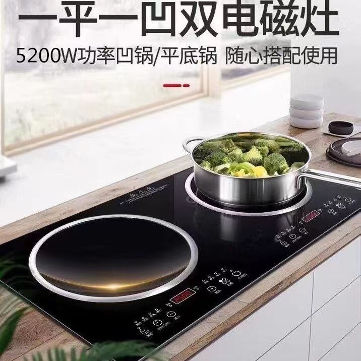 Embedded Induction Cooker Double Stove Concave Household Stir-Fry Flat Electric Ceramic Stove Soup One Magnetic One Ceramic Double-Headed Electric Stove