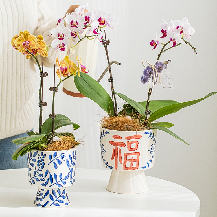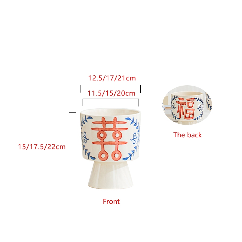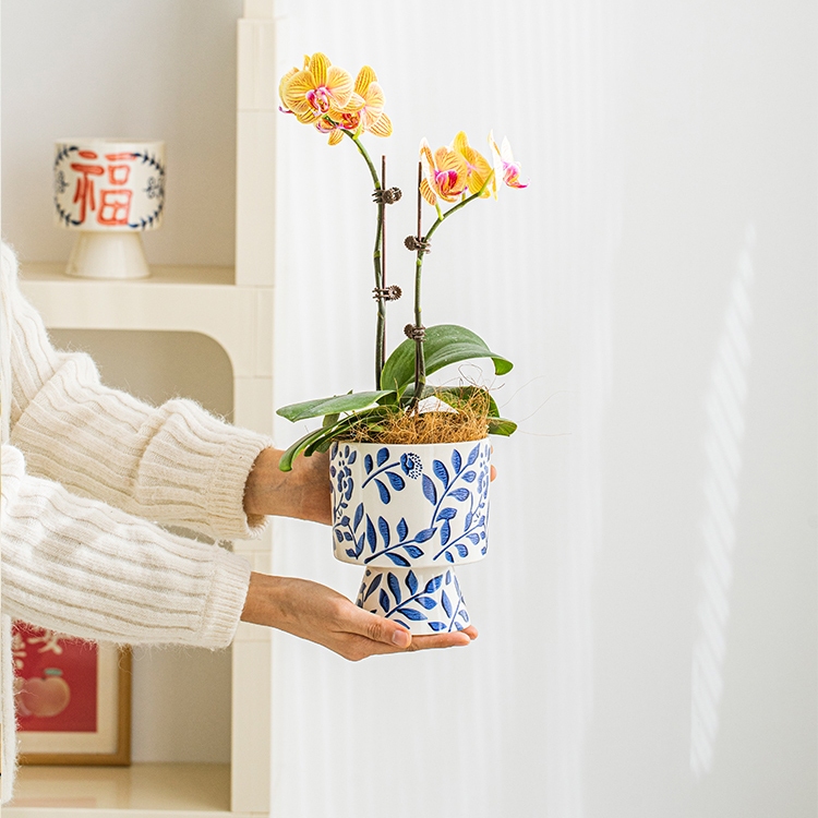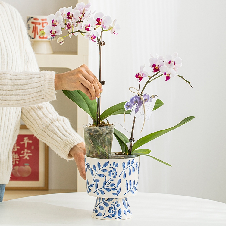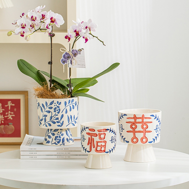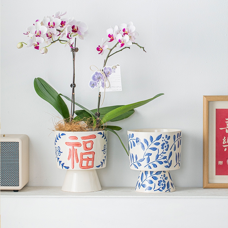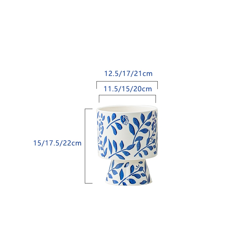 Embossed Blue and White Porcelain Texture Ceramic Flowerpot Chinese Style Home Decor Planting Pot