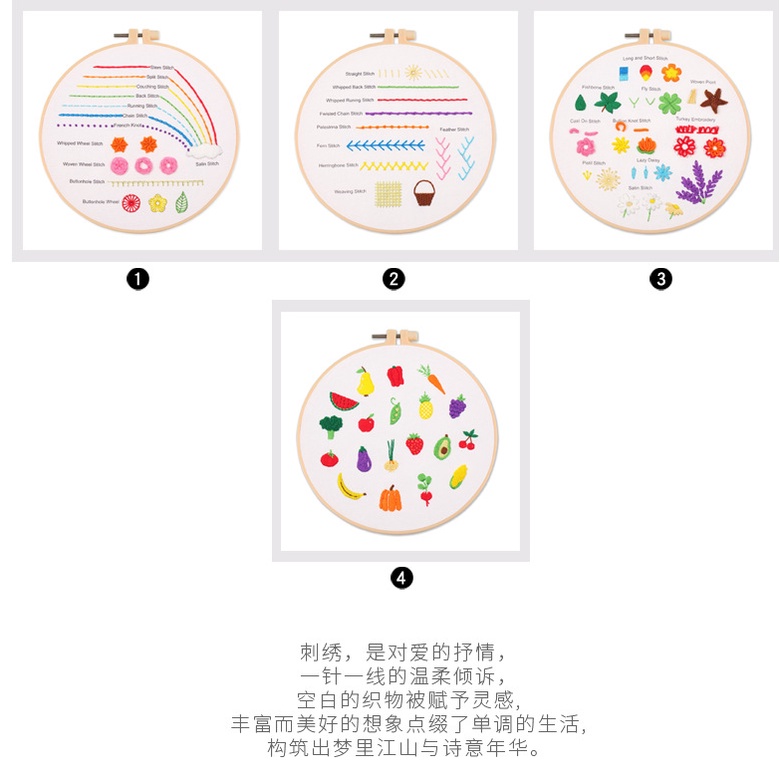Embroidery kit, embroidery stitch practice pattern, can be used for students, community embroidery teaching, embroidery beginners material kit