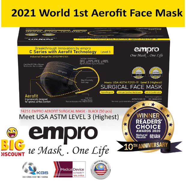 Empro Aerofit Tech ASTM Level 3 Black 3-ply Face Mask with beauty New Launched design fashion mask c series