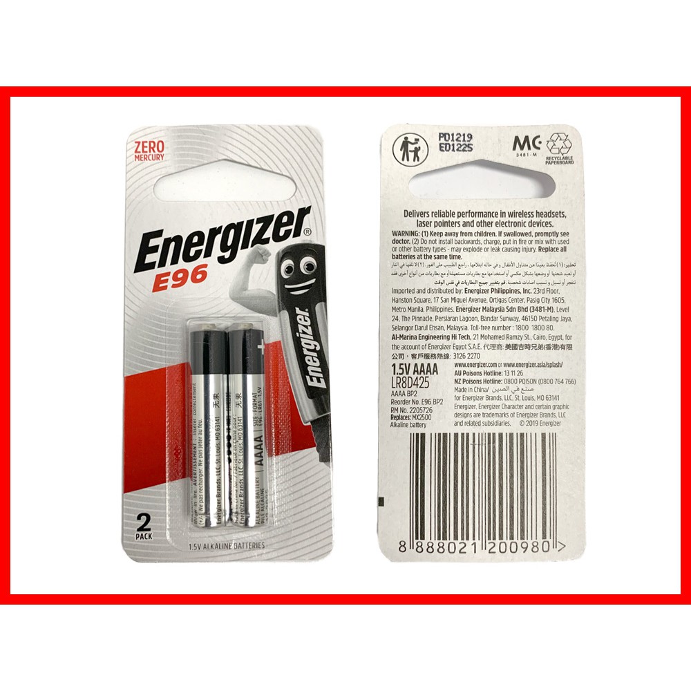 Energizer E96 AAAA Battery (Batteries) - AAAA E96 Battery (Batteries) - 4As Battery (Batteries) - Alkaline 2pc - PK [SG]