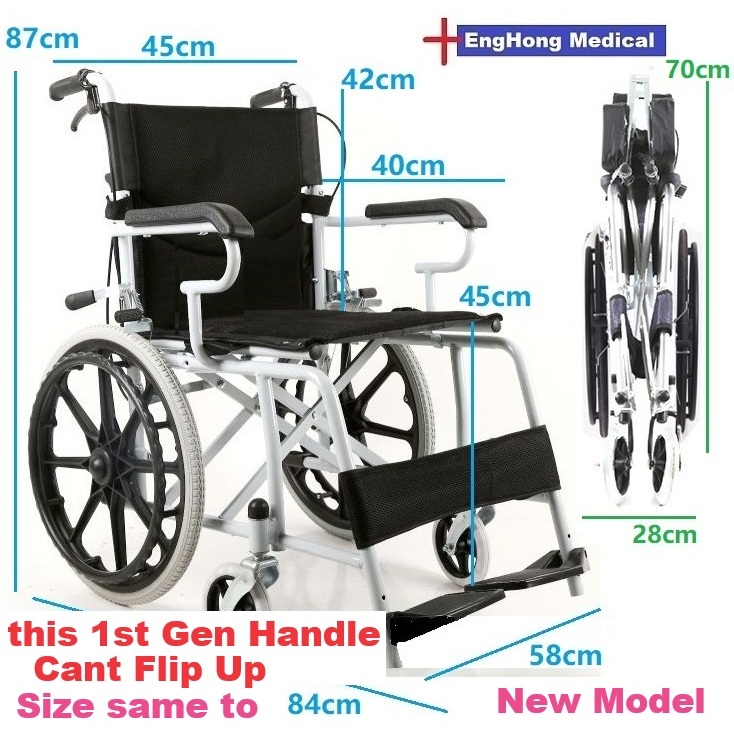 EngHong Flip Up Handle Wheelchair, Handle Openable Wheelchair, Flip Up Armrest Wheelchair, Big Rim Detachable Wheelchair