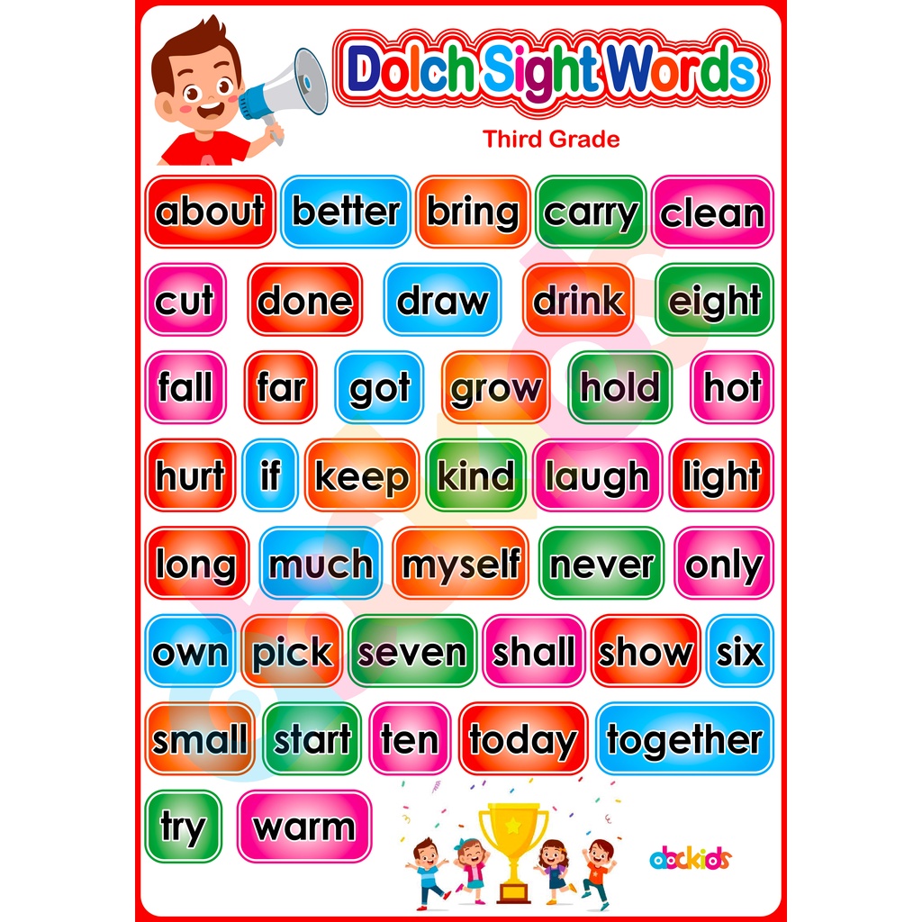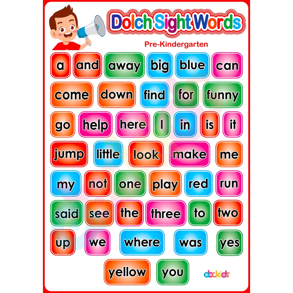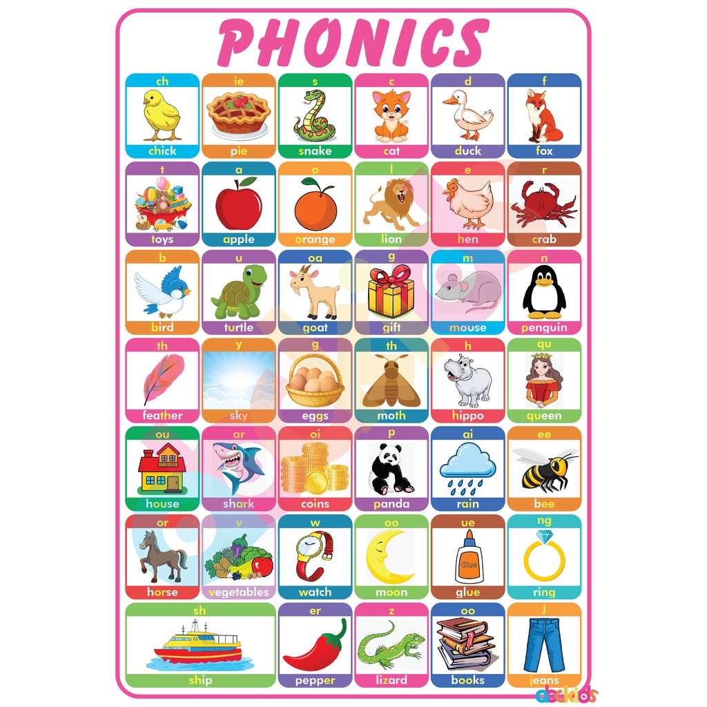 English Reading Educational Learning Materials and Wall Charts For Kids - Laminated in A4 Size