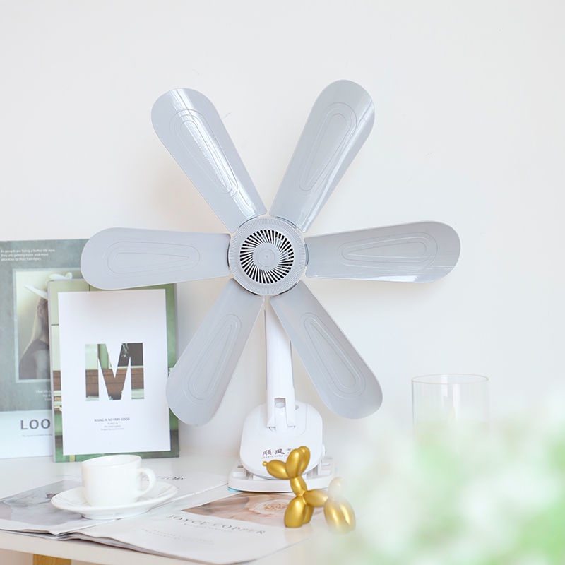 Enoughome Cooling Ceiling Fan Portable Six-Leaf Desktop Clamp Fan Silent Large Wind Clamp Fan Dormitory Wall Fan Non-Perforated Fan