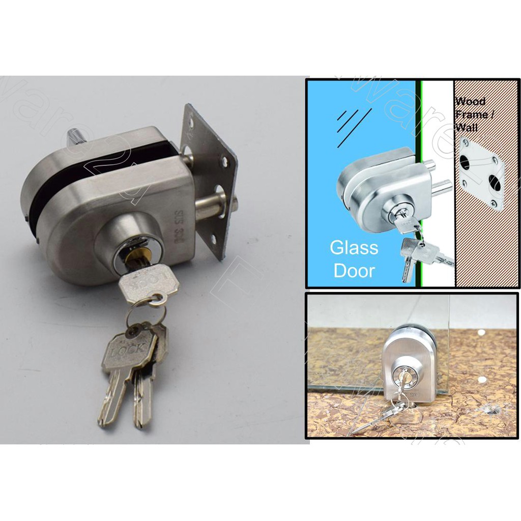 Entry Gate Clamp-On Glass Swing Door Lock Key + Knob (LK138B)
