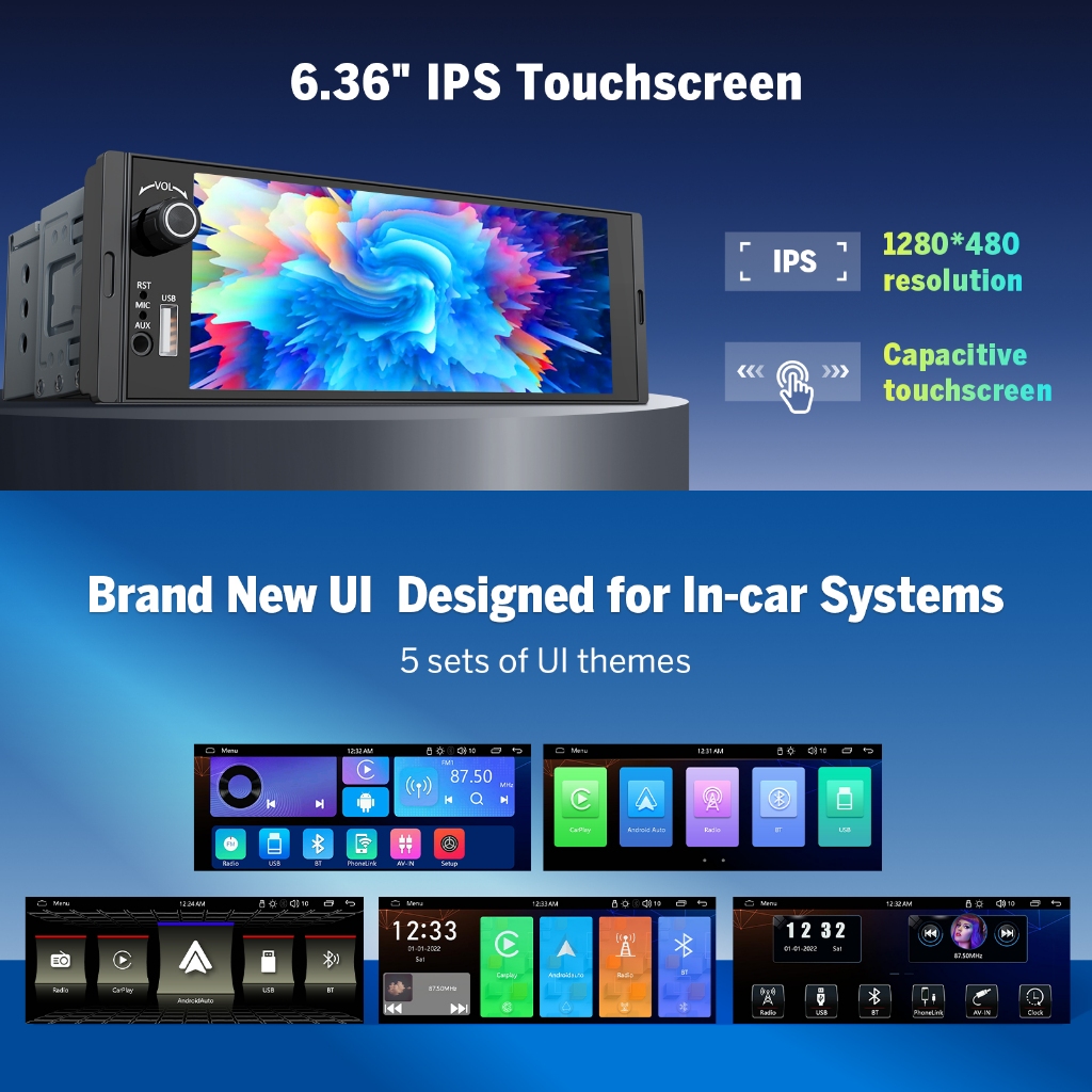 Eonon Wireless Apple Carplay Android Auto One Din Android Auto Car Player 6.36 inch MP5 Player X3U