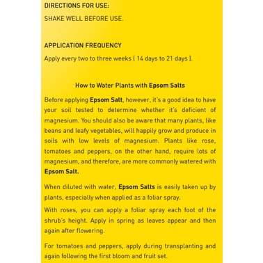 Epsom Salts Spray (Magnesium Sulfate) 500ml - Plant Booster (Increase Disease Resistance and Chlorophyll Production)