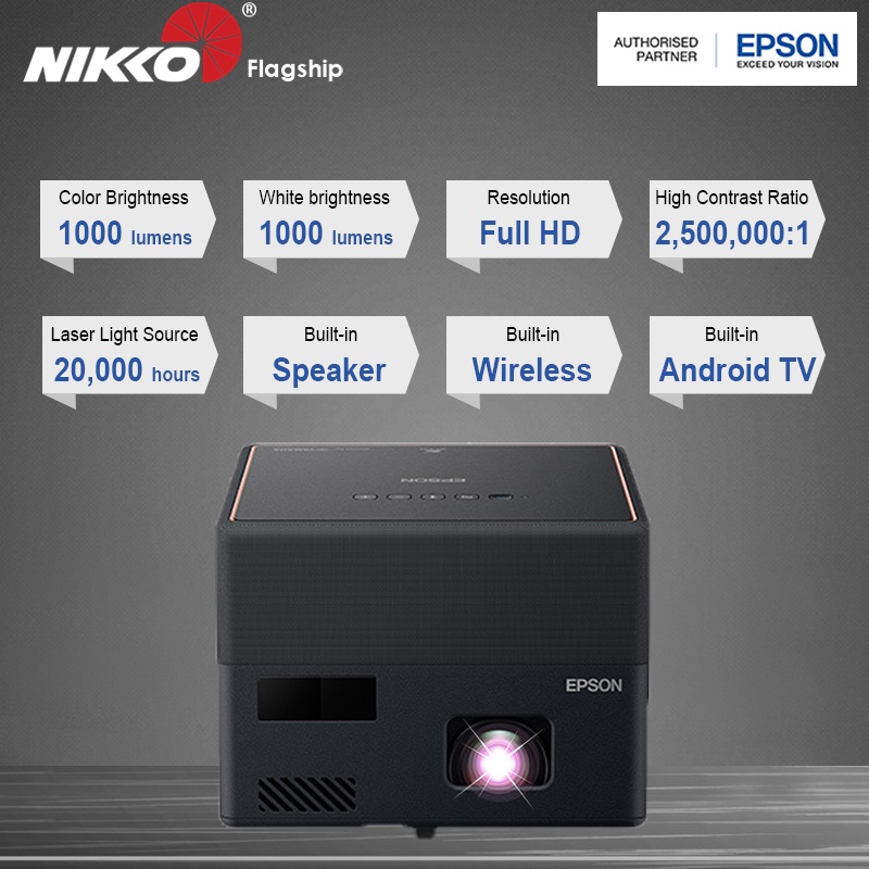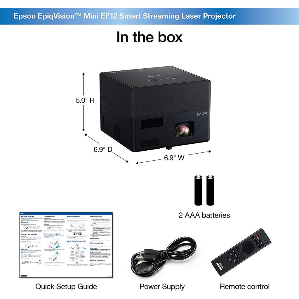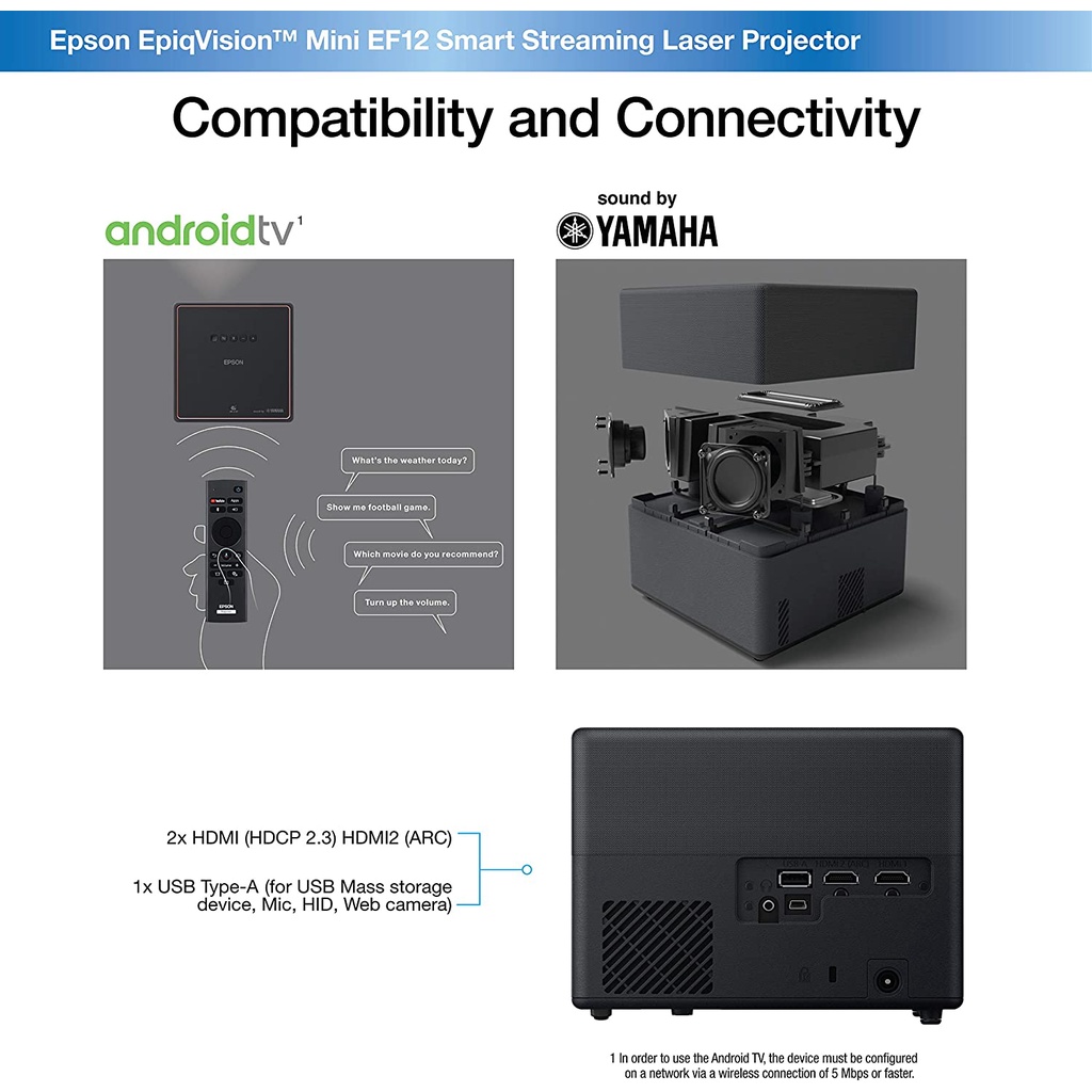 Epson EpiqVision Mini EF-12 EF12 Smart Laser Projector, HDR, Android TV, Portable, sound by Yamaha, 3LCD, Full HD
