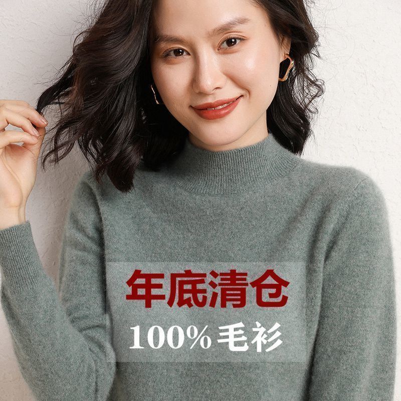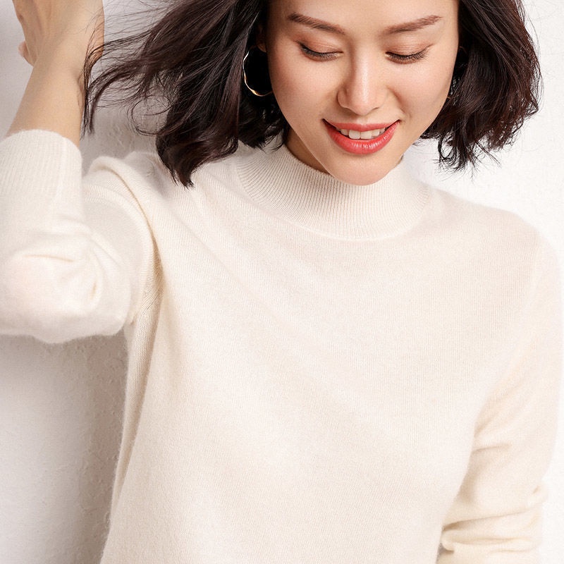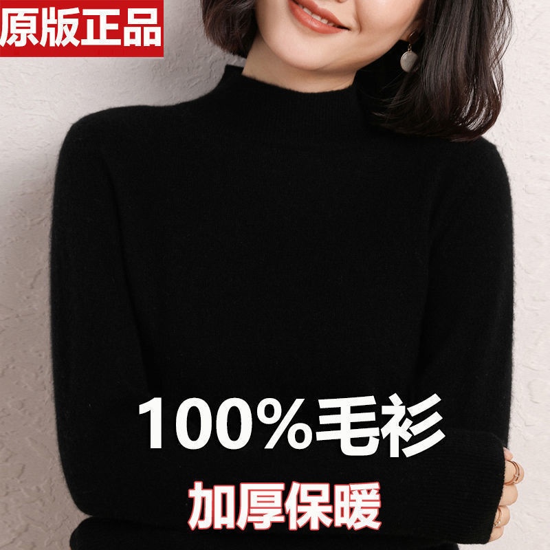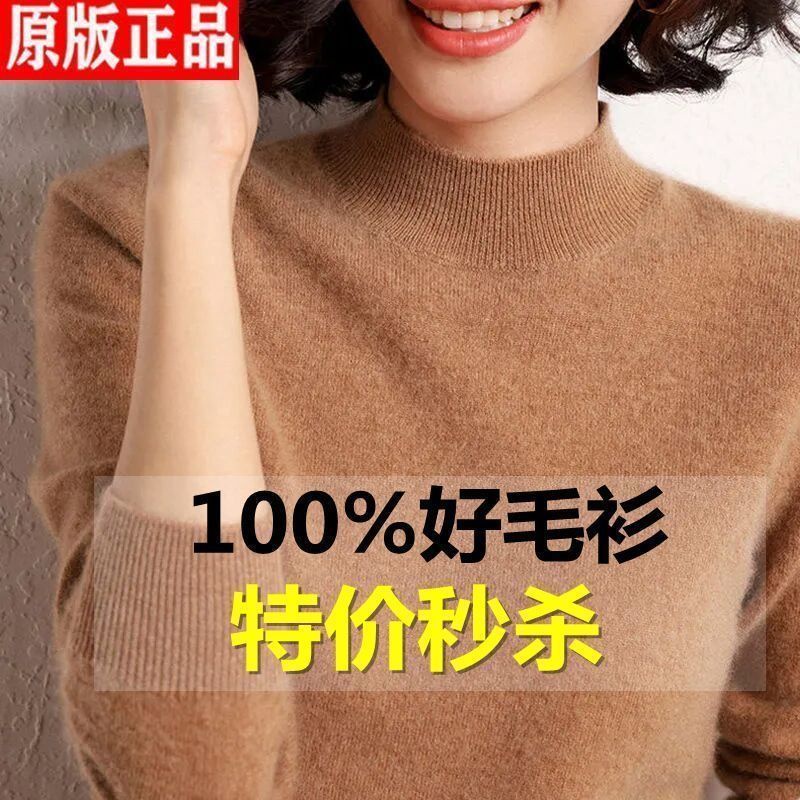 Erdos City Wool Sweater Women's Brand Short Cashmere Shirt Autumn Winter Half Turtleneck Thickened Loose Bottoming
