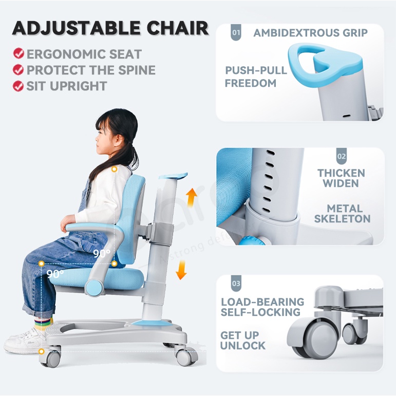 Ergonomic Kids Study Table Children Kids Table and Chair Set, Height Adjustable Student Study Table With Kids Study Chair / Desk Chair