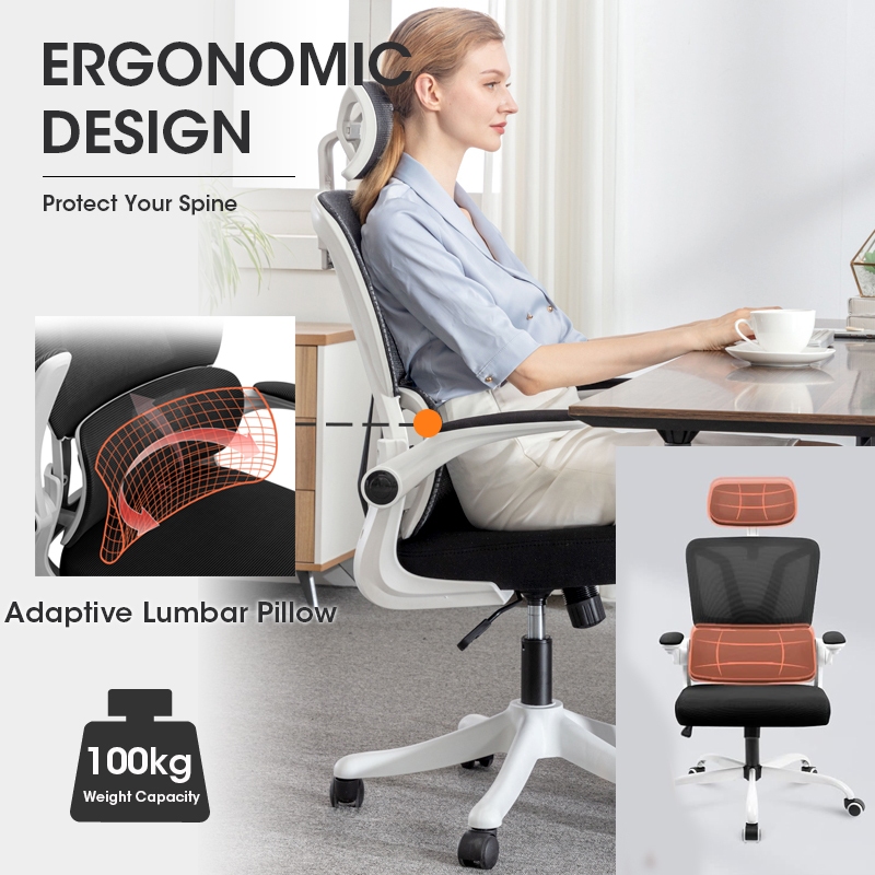 Ergonomic Office Chair Breathable Mesh High Back with Dynamic Lumbar Support Height Adjustable 3D Headrest