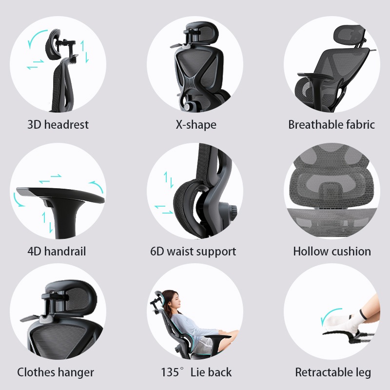 Ergonomic Office Chair With 6D Lumbar Support Full Mesh Ergonomic Chair Office Computer Chair 3 Years Warranty