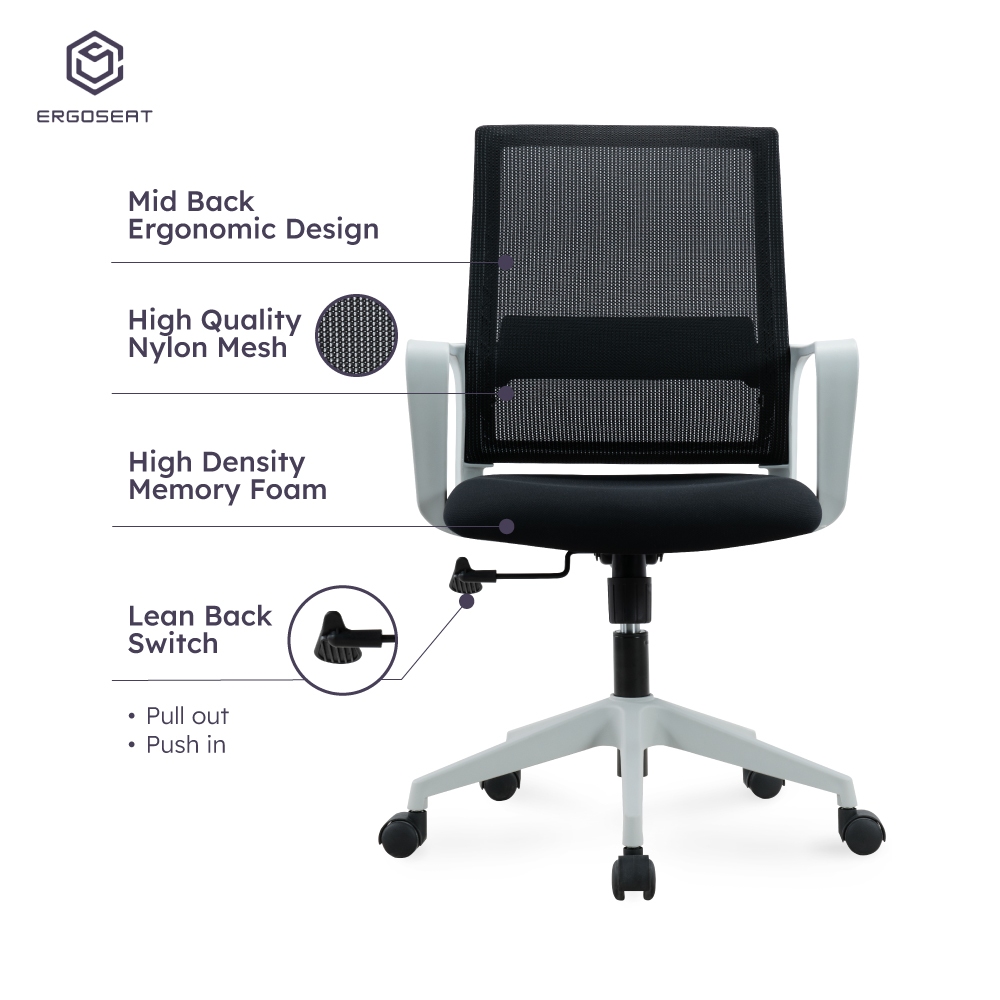 Ergoseat Economical Series Mid Back Ergonomic Office Chair Home Study Chairs - Free Delivery