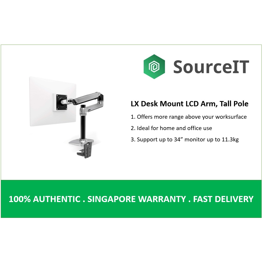 Ergotron LX Desk Mount LCD Arm, Tall Pole (Polished Aluminium) - 10 Year Local Warranty