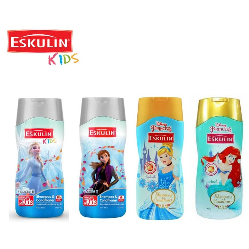 Eskulin Kids Shampoo & Conditioner 200ml - Elsa / Anna / Cinderella / Ariel / Rapunzel