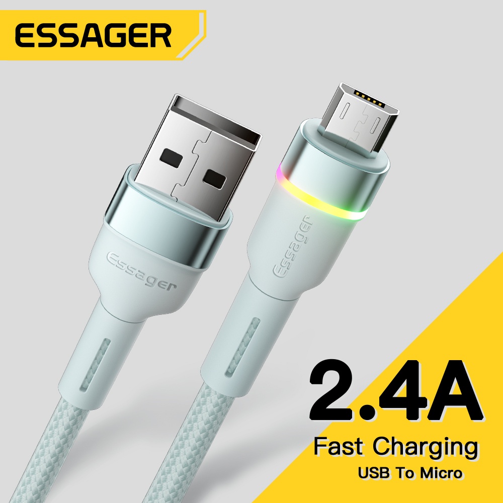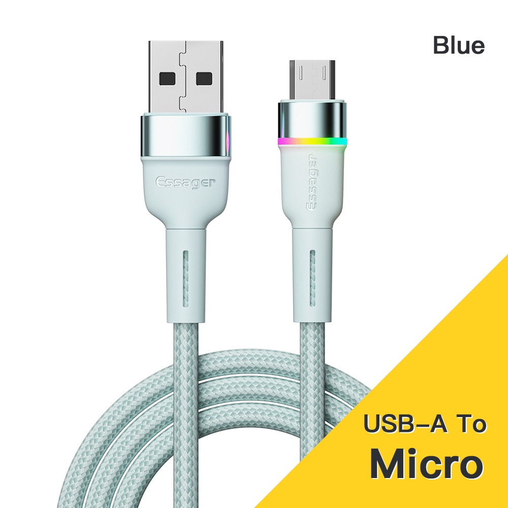Essager 3A micro usb cable RGB colorful lights color changing micro usb cable fast charging support android phone fast charging cable