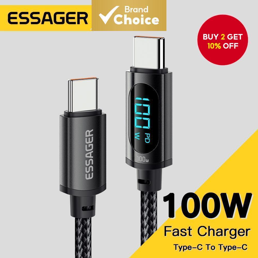 Essager 5A 100W Type C to Type C Cable Digital Display QC PD Fast Charger Cable USB-C Cable For Samsung Xiaomi