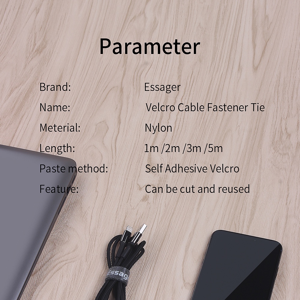 Essager Cable Management Strap Black 1m-5m Cord Reel Cable Holder