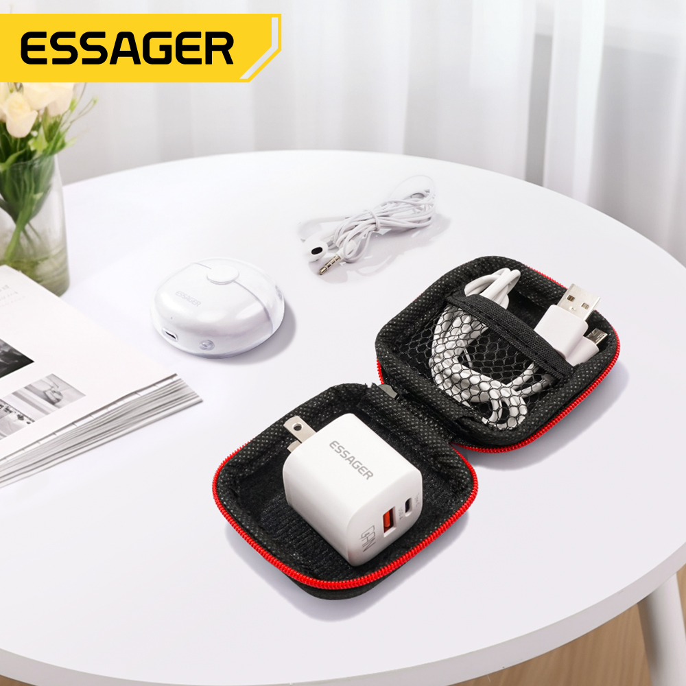 Essager Mini Portable Earphone bag Headphone USB Cable Case Storage Box Wallet Carrying Pouch Bag Earphone Accessory