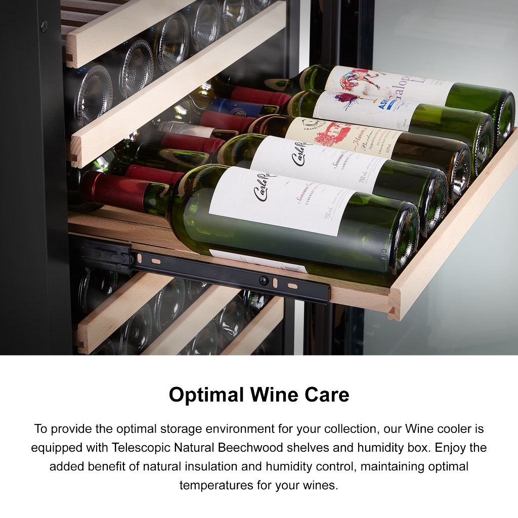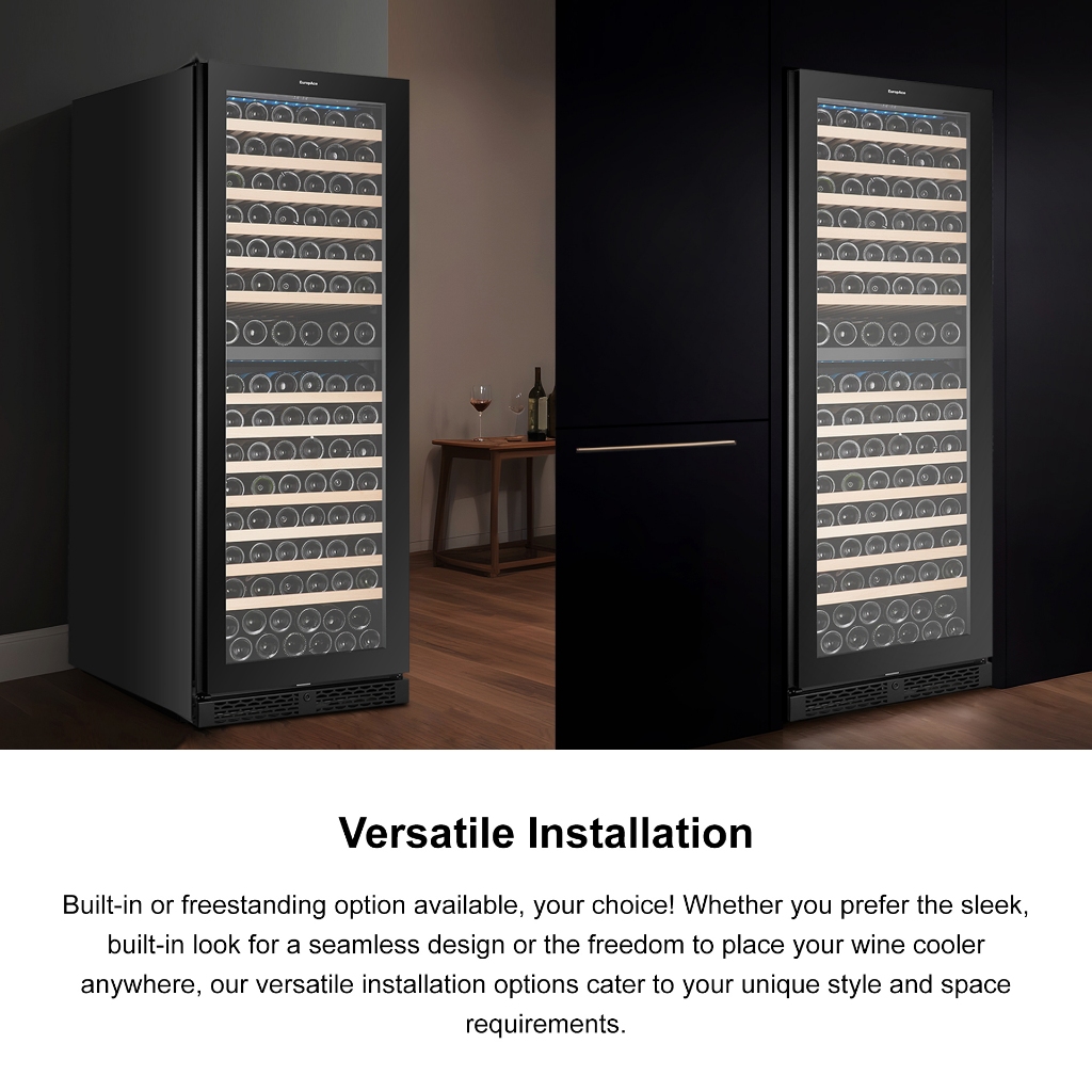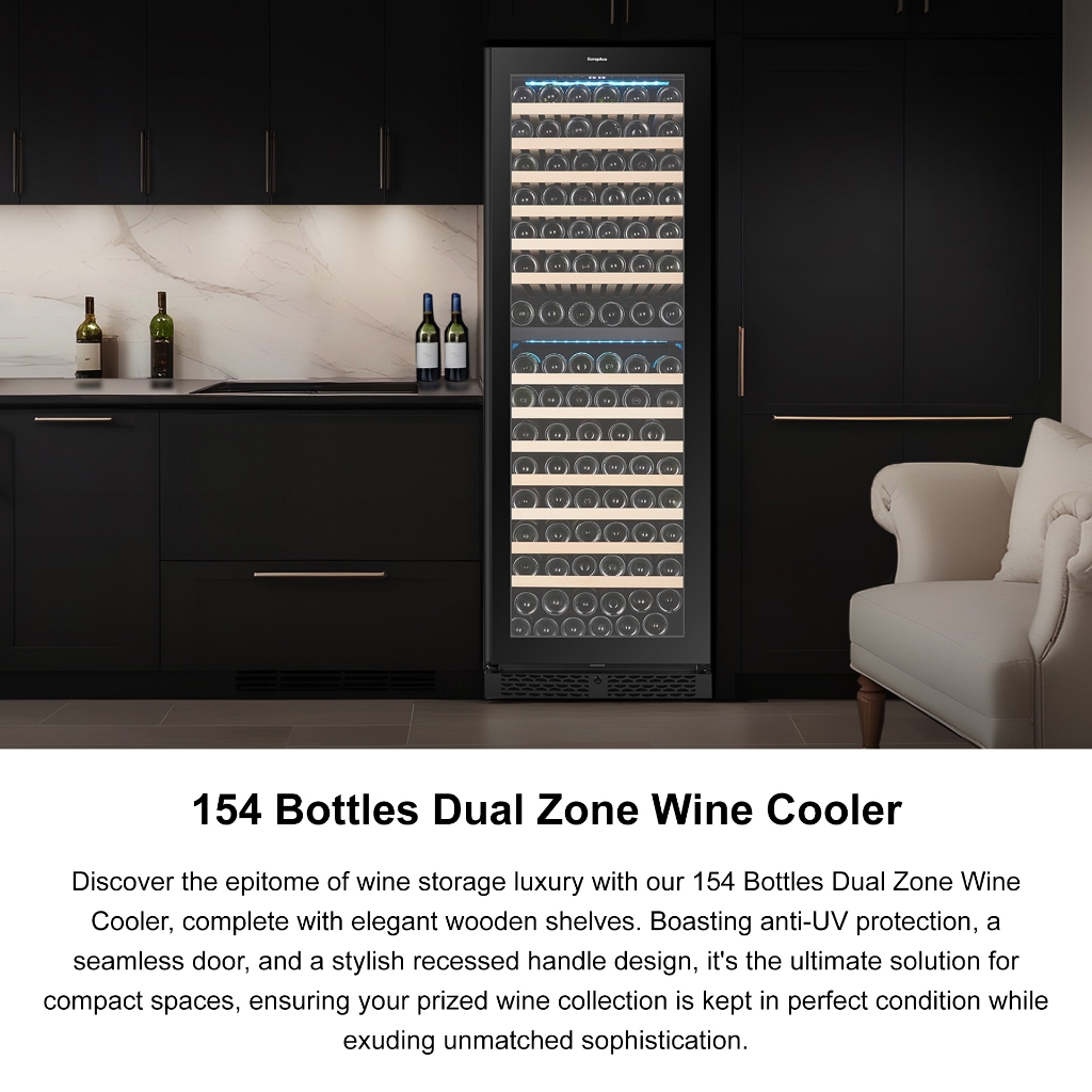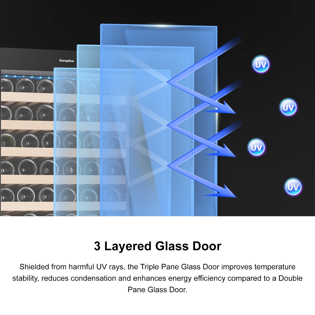 EuropAce 154 Bottles Wine Chiller | EWC8154DBK | Dual Zone with Dual Fan System, 3 Layered Glassdoor, Recessed Handles