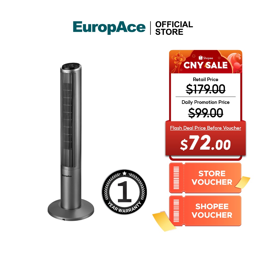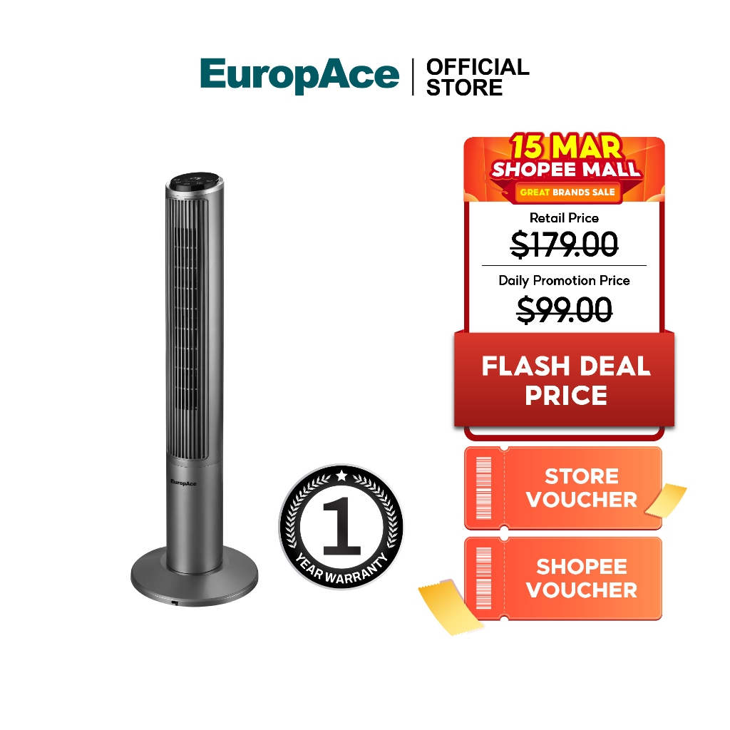 EuropAce Best Selling 40" Tower Fan | ETF1102D & Tower Fans | Touch Control, Sleek Design, Online Exclusive