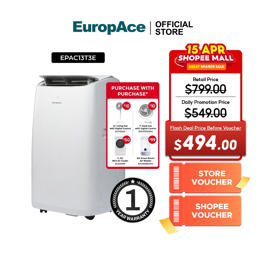 EuropAce [2025 Model] Single/Dual Hose Portable Air Conditioner | EPAC15T3E ,EPAC13T3E and EGAC10A6 | Our Best Seller!