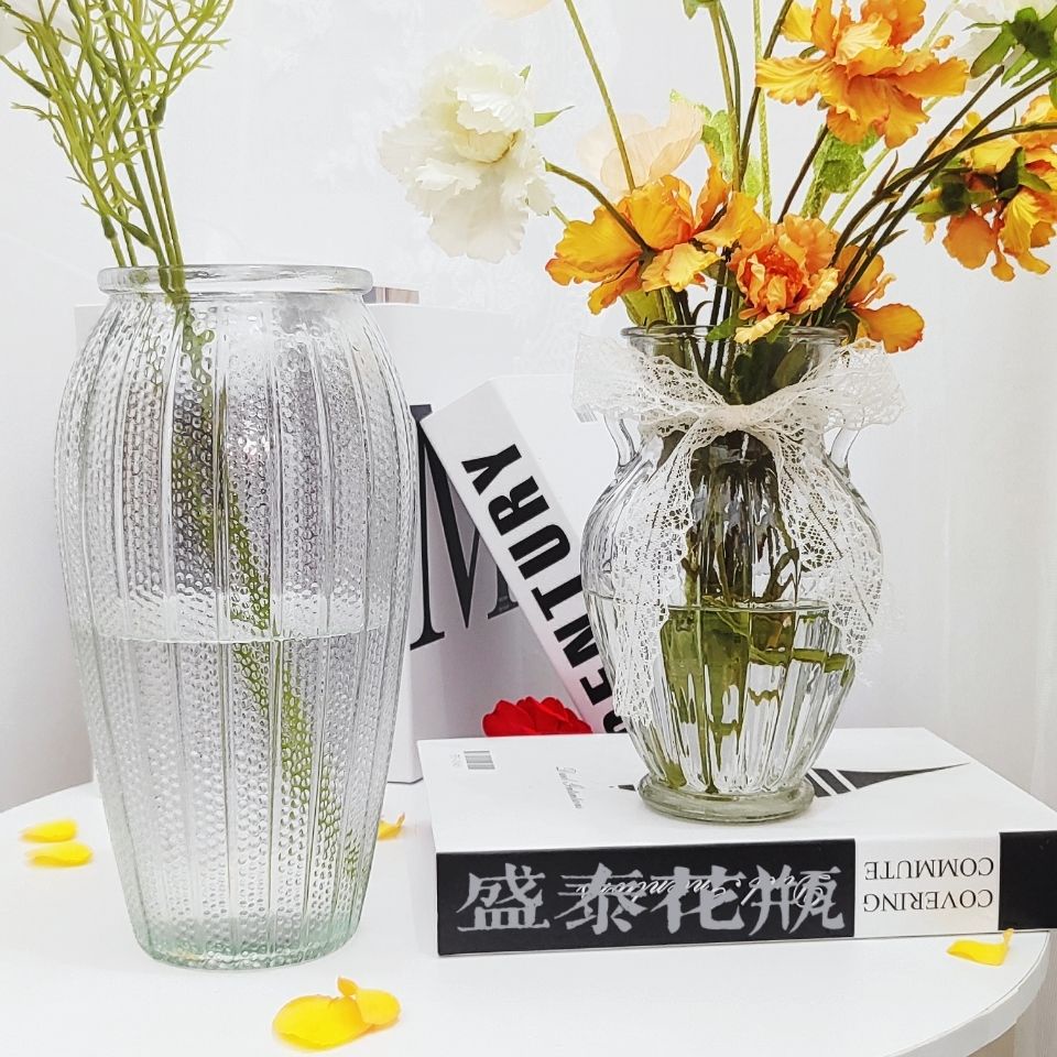 European-Style Transparent Glass Vase Simple Flower Dried Flower Rose Vase Living Room Decorative Ornaments Creative Aquatic Flower Arrangement