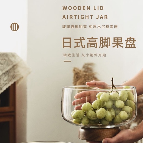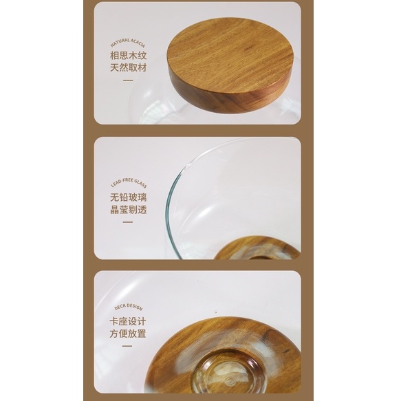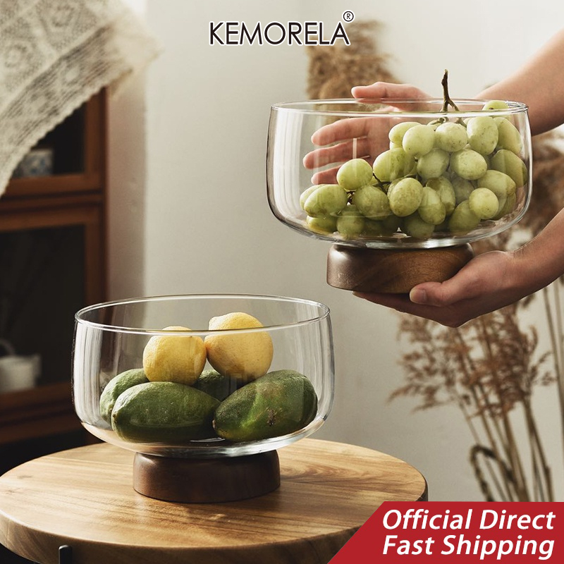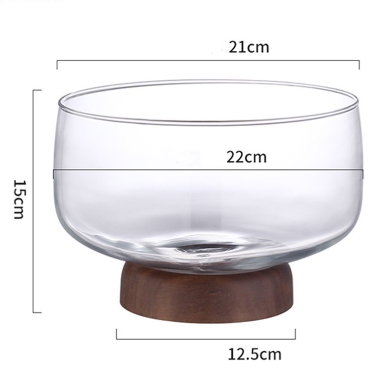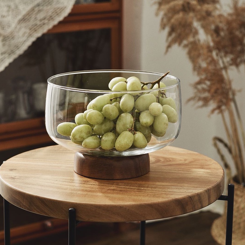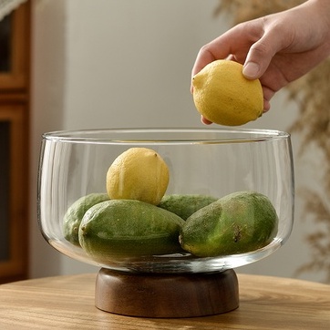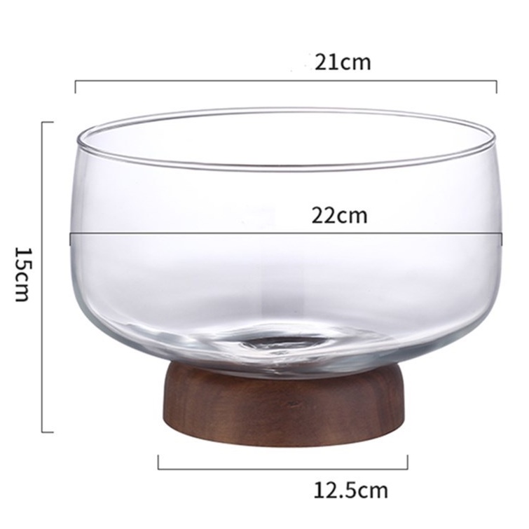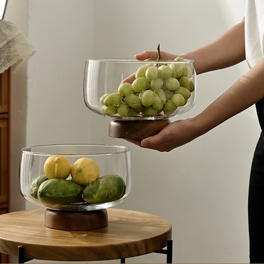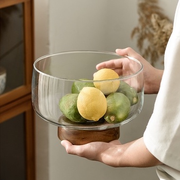 European Transparent Glass Fruit Tray Wooden Base Candy Dessert Storage Tray Salad Bowl Coffee Table Desktop Home Decoration New
