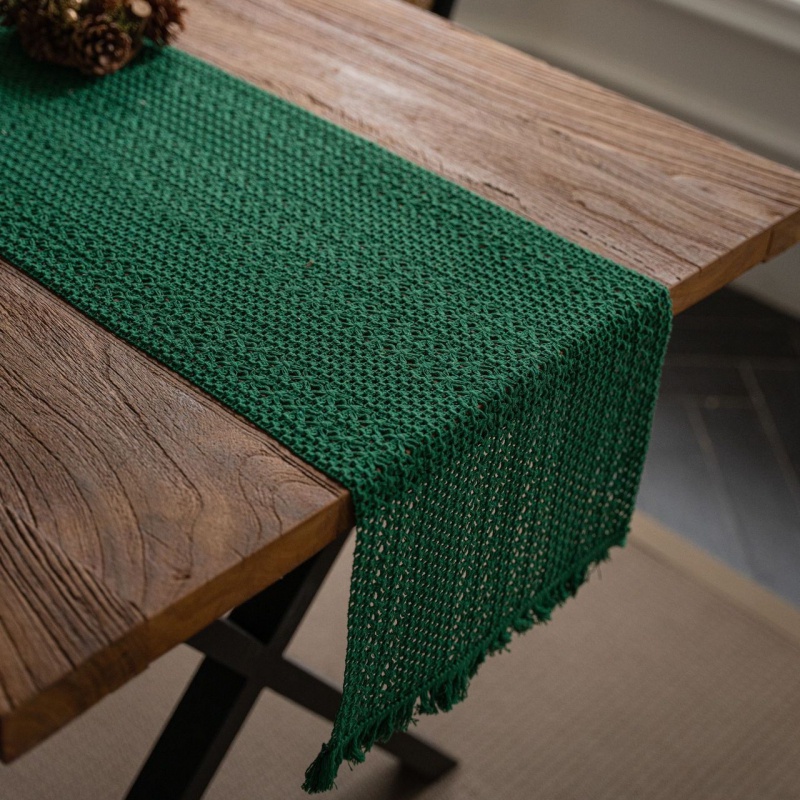 Evaahome Table Runner Green Solid Color French Retro Woven Tassel Natural Material Tablecloth Cloth Table Runner Placemat