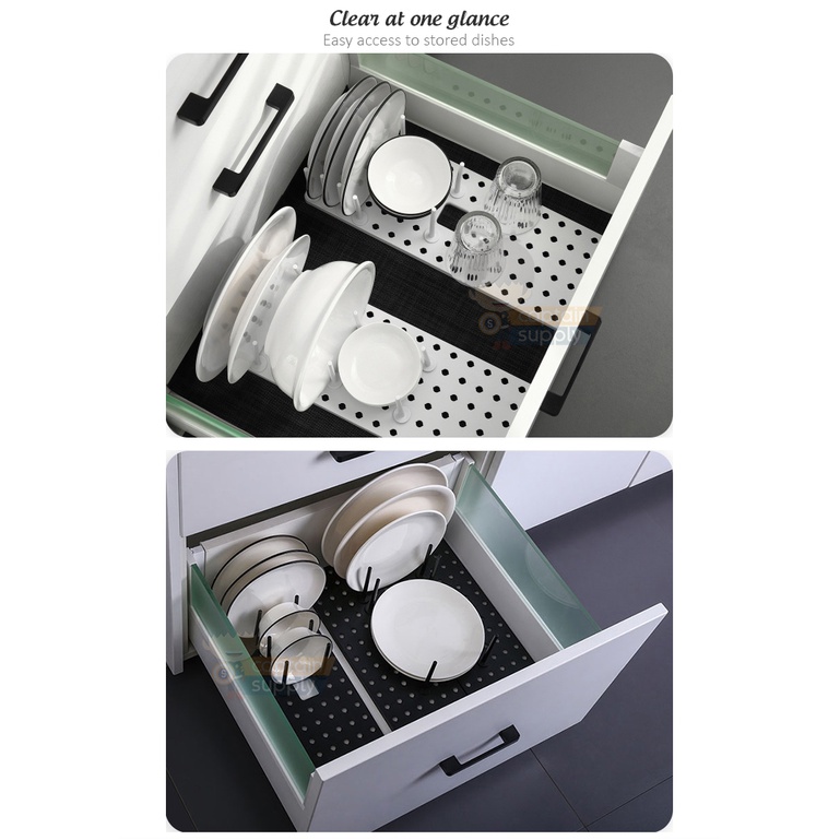 Expandable Kitchen Drawer Bowls Plates Organiser Tray