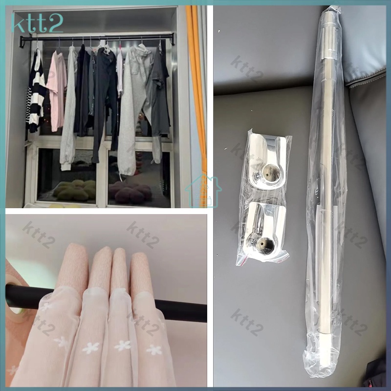 Extendable clothes pole hanger Punch-Free Silver/black/white curtain rod indoor balcony hanging clothes pole