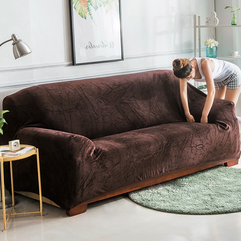 Extensible Sofa Cover Velvet Plush Couch Slipcover for Living Room Elastic Stretch Sofa Cover Cape Corner Couch Protector