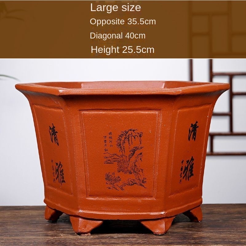 Extra Large Purple Sand Hexagonal Orchid Pots Chinese Style Garden Bonsai Ground Green Plant Square Old Pile Flower Pot Basin