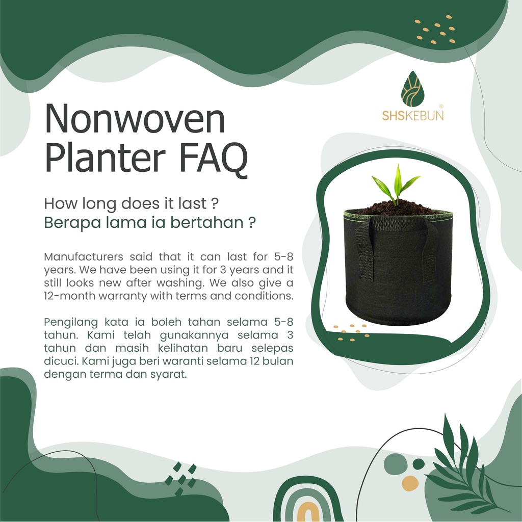 Extra Thick (370g/m2) Nonwoven Raised Bed Planter 15 gallon Raised Planting Bed Fabric Pasu Fabrik SHS Kebun