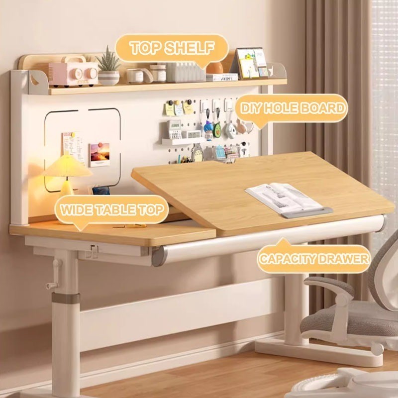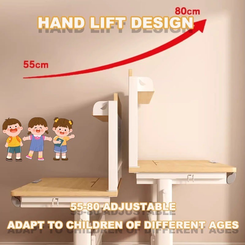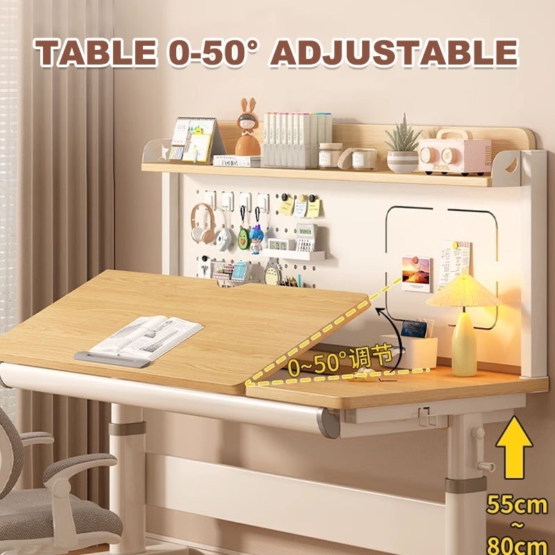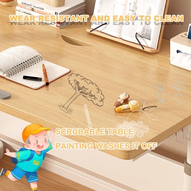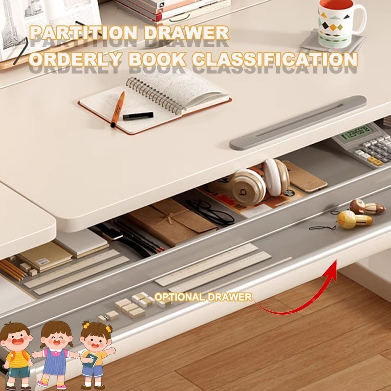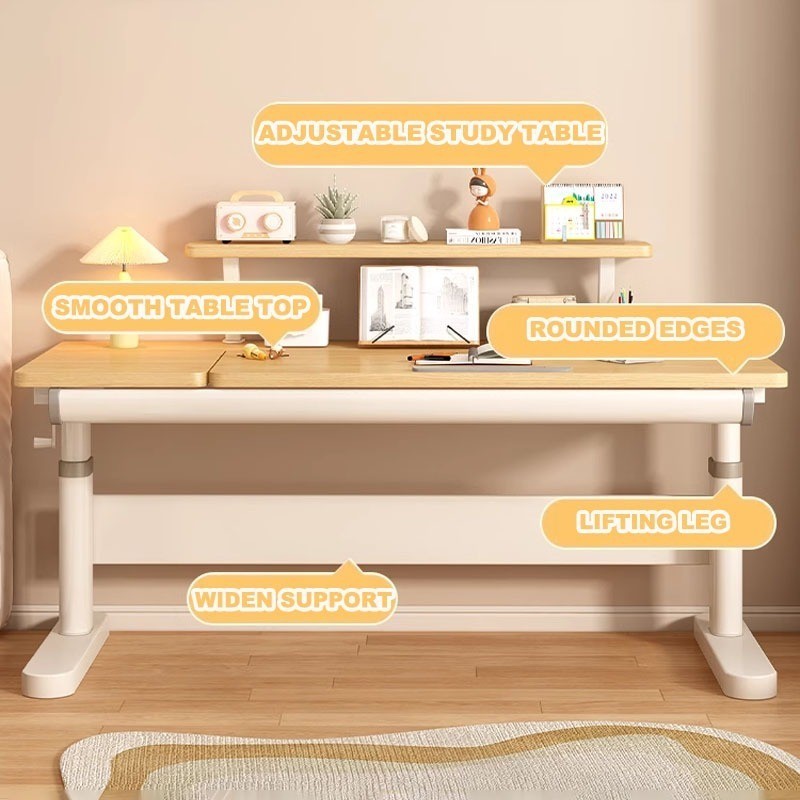 F HOME Children Study Table With Drawer Height Adjustbale Table With Bookshelf Study Standing Desk