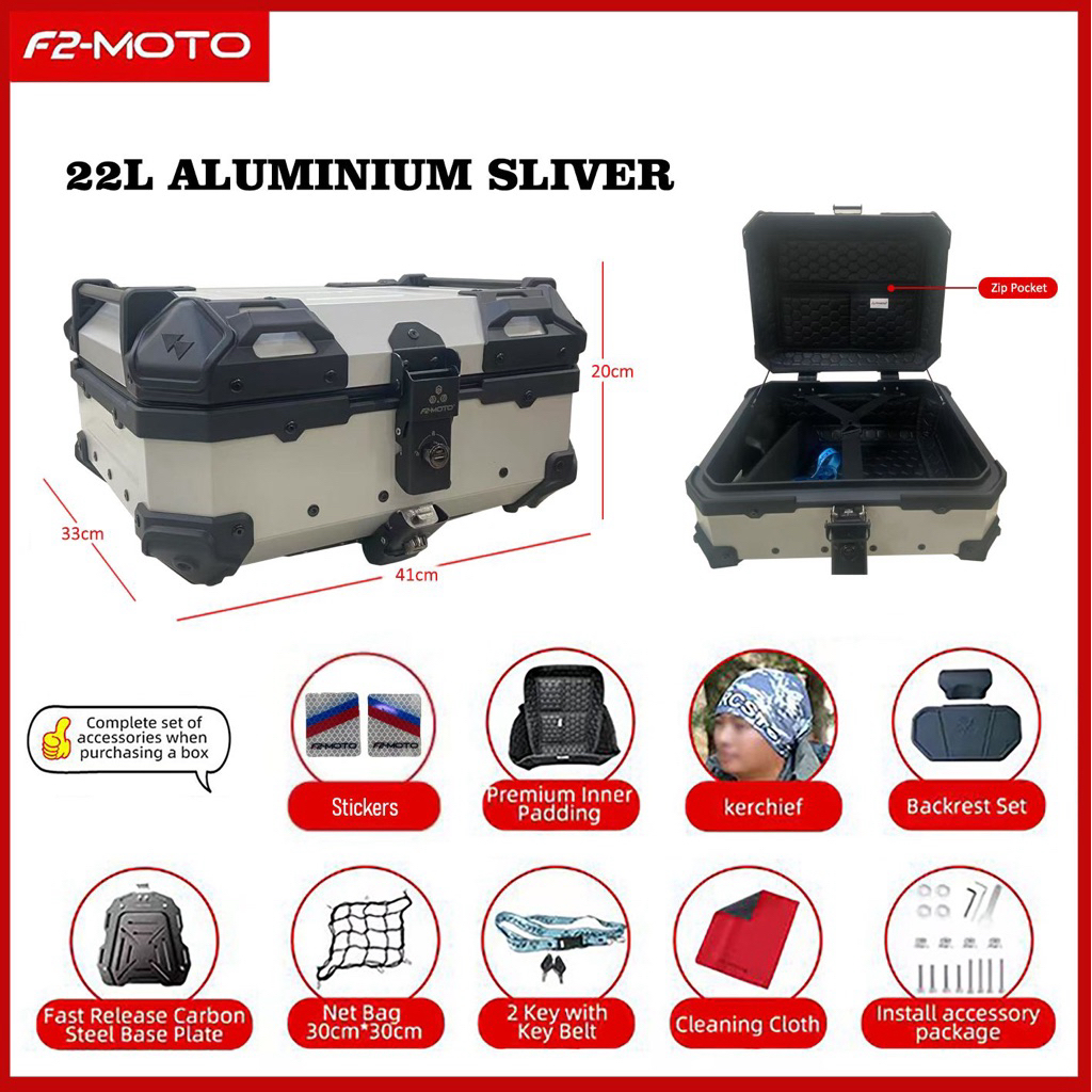 F2-MOTO ALUMINUM BOX / ABS PLASTIC BOX/ TOP CASE MOTORCYCLE BOX MOTORCYCLE CASE w ZIP