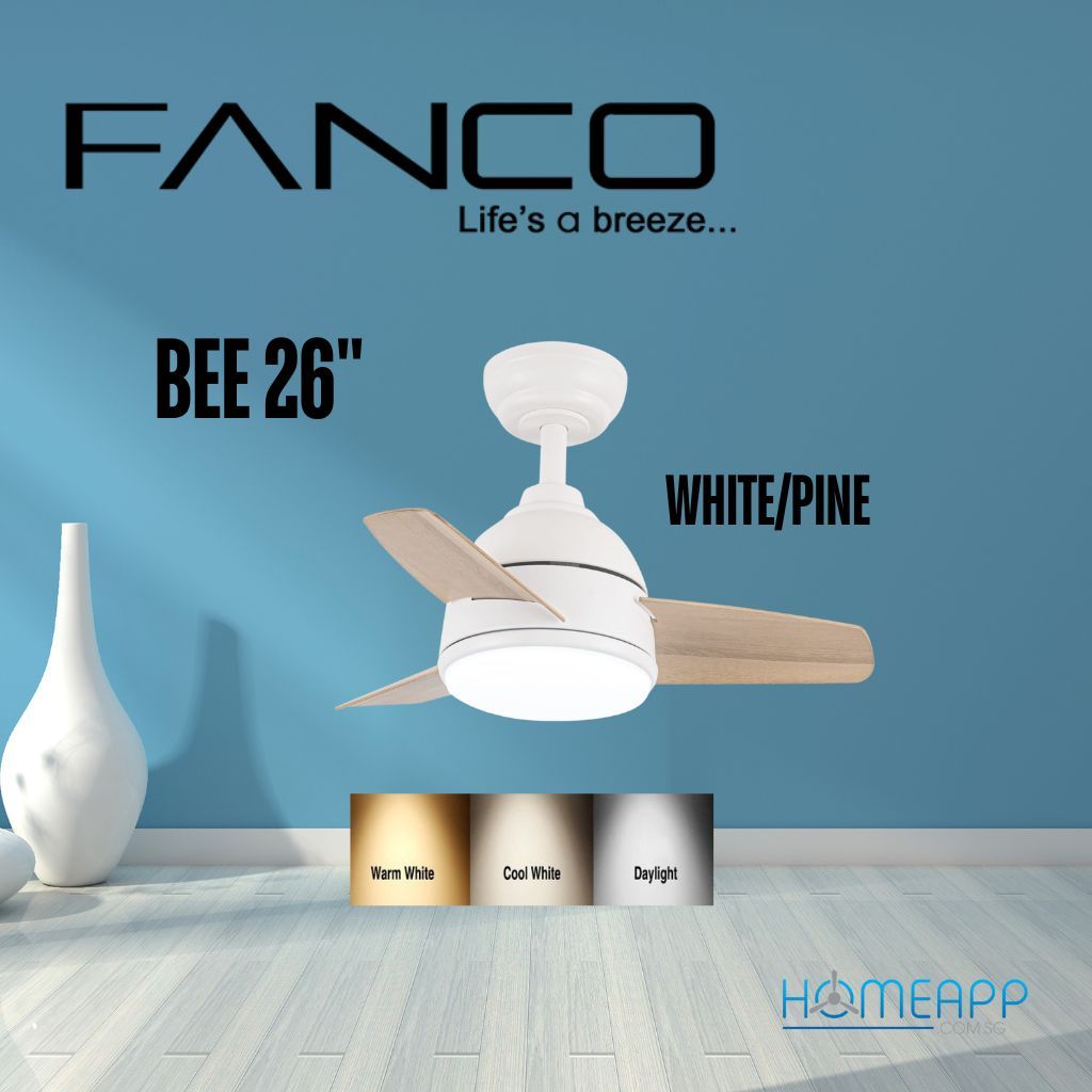 FANCO Bee 26" DC motor ceiling fan tri colour LED 24W light remote control