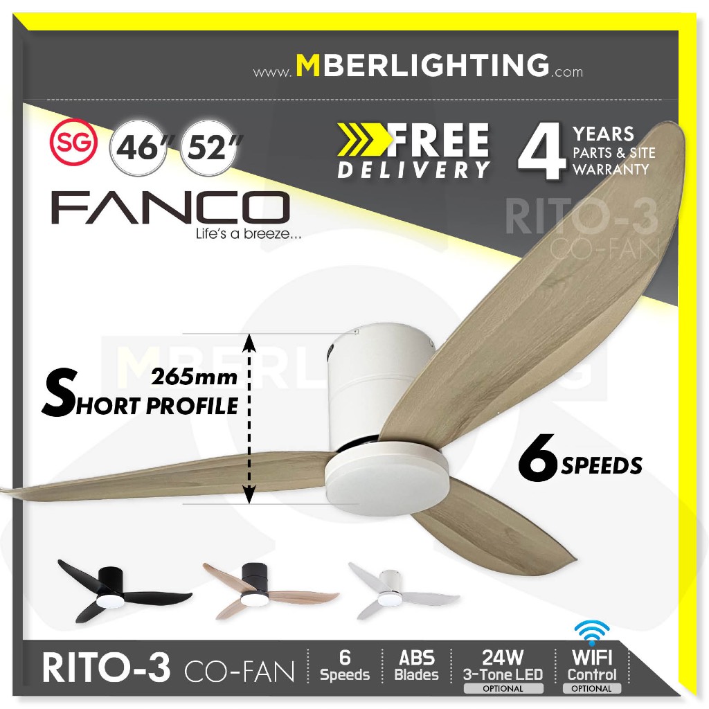 [ Free Delivery] FANCO CO-FAN Rito-3 DC Ceiling Fan With Optional LED Light 46/52"