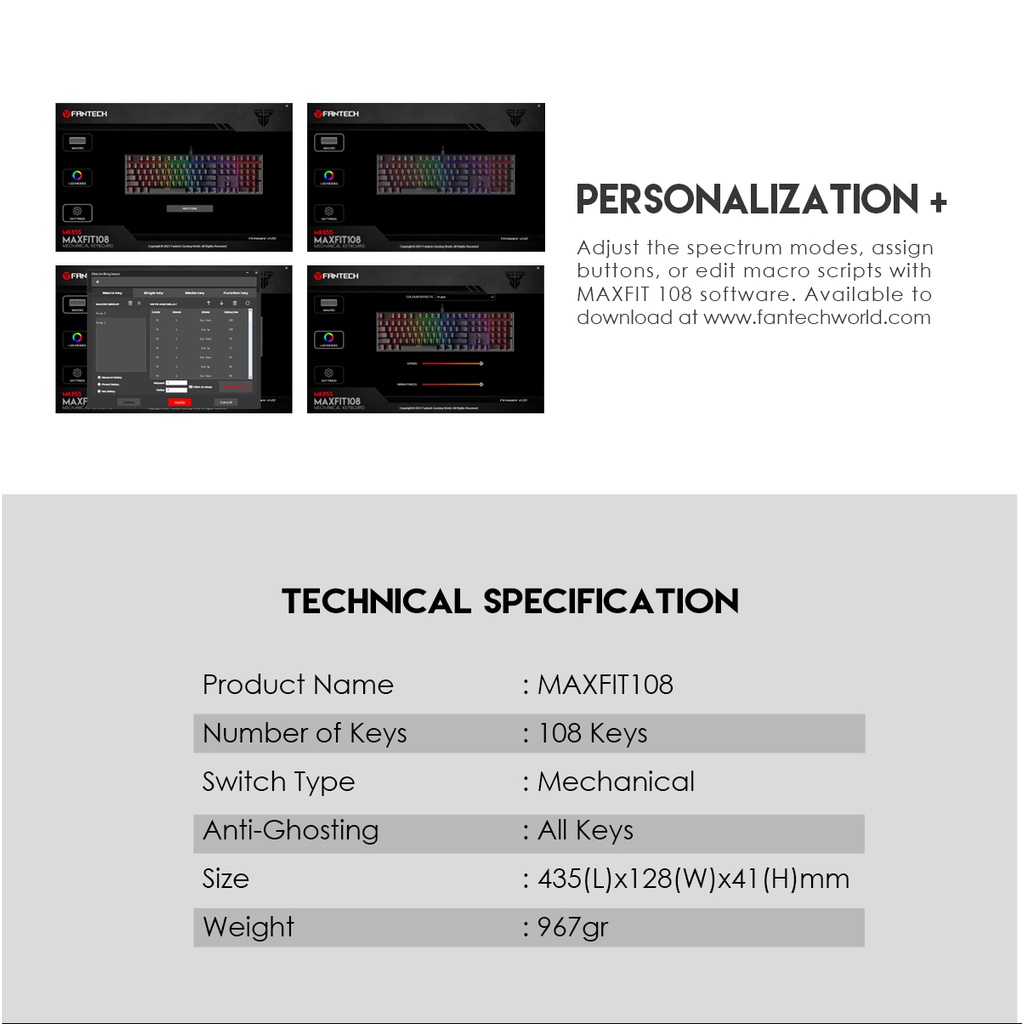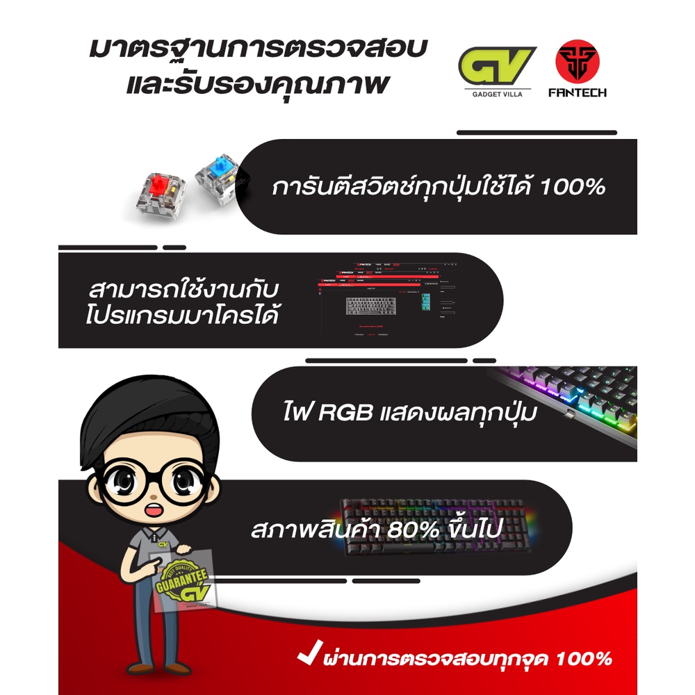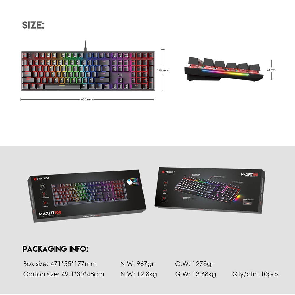FANTECH MK855 MAXFIT KEYBOARD MECHANICAL BLUE/RED SWITCH 108 KEY Thai
